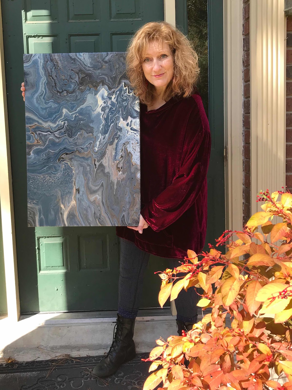 This piece. I love it. Entitled ‘Stone Flow II,’ it’s one in a series of four paintings. If you look at my photo of all four pieces you can see this one and the biggest one, ‘Stone Flow,’ actually do flow together. They can be purchased together or separately on my website, www.colorcatstudios101.etsy.com. Mainly steel blue, neutrals and golds, it’s a piece that will look fabulous in so many interiors. Would you give it as a gift or hang it in your own home? Stone Flow, at 24”x30” is $500.00. Stone Flow II, at 20”x30” is $450.00