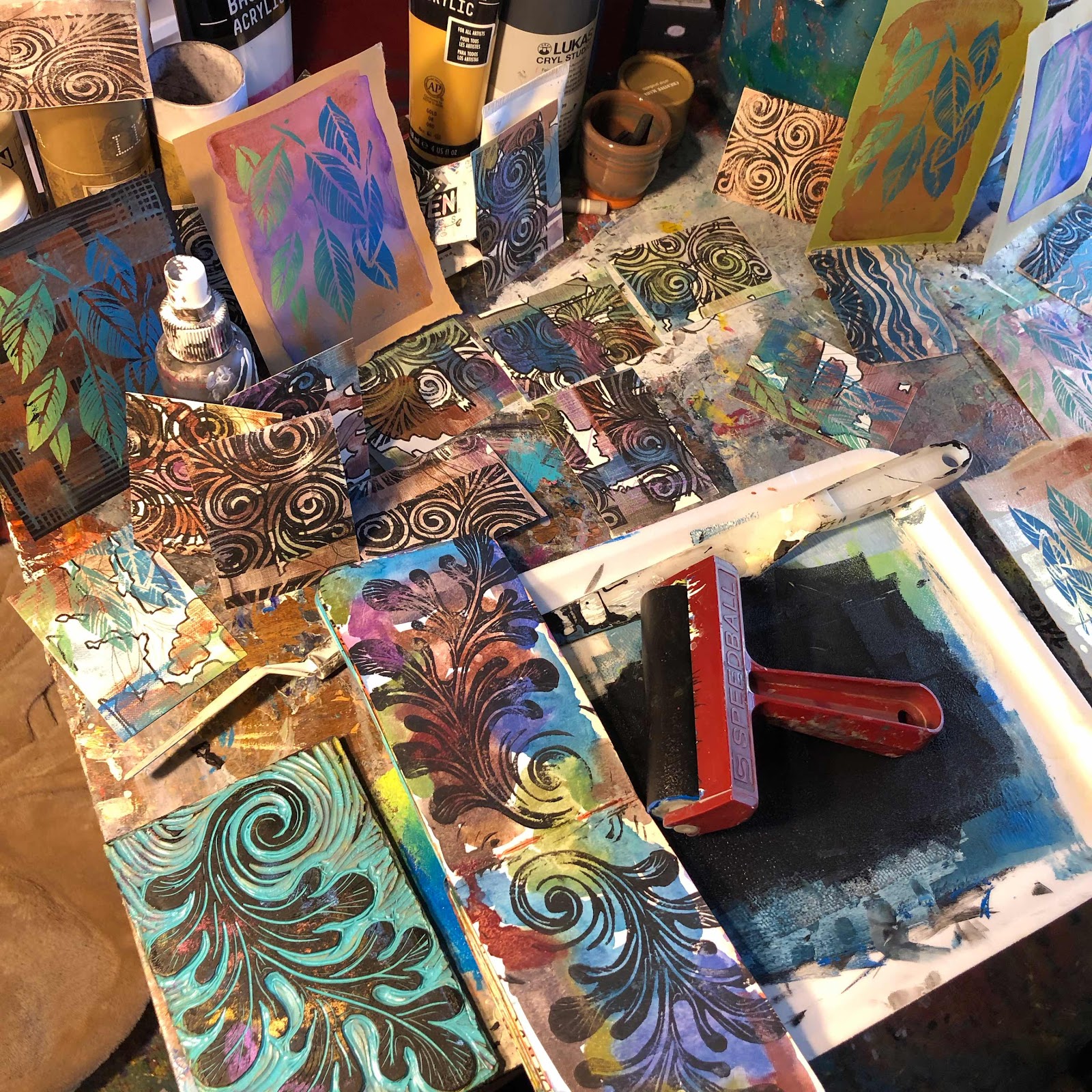 If you want to start easy with print making, you can actually do it on a styrofoam meat tray from the grocery store with a pencil and some acrylic paint. That’s super basic but a good way to get a feel for the process. I always use printer’s ink because it’s the perfect viscosity for all the details. There are SO many ways to print and I love them ALL!